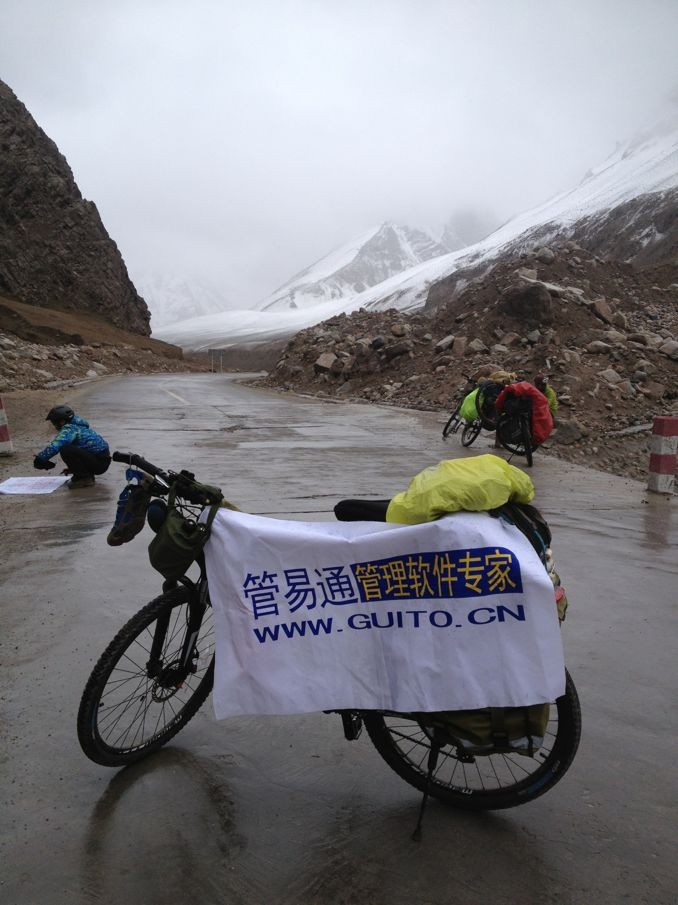 2012年初,Tobey立下宏愿---带着管易通的旗帜,单车骑行疆藏,让自已经受浴火重生般的历炼,让管易通接受高原雪山的洗礼。