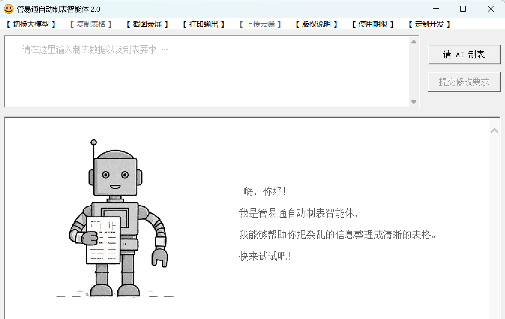 人工智能自动分析你的需求,可以生成多种表格以及图表。并且表格可以复制粘贴到Excel、可以截图生成图片、可以打印输出到纸张、还可以上传到云端!