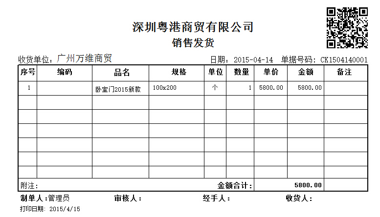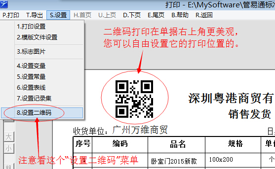 在管易通软件中,打印输出的入库单、出库单、销售单、送货单纸质单据上,同时打印一枚二维码,使用微信扫描二维码,即可实现云签名。