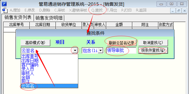 另外,还可以根据云签名记录对单据进行筛选查找,如图: